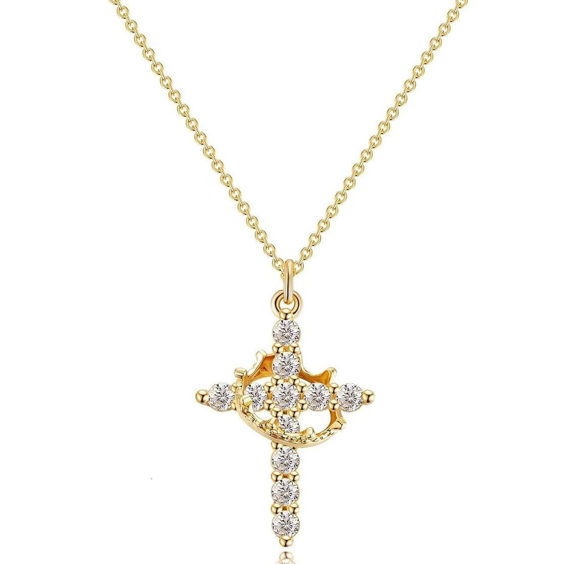 Este colgante, con su cruz y corona cuidadosamente elaboradas, es perfecto para quien aprecia el equilibrio entre espiritualidad y estilo. Su diseño en acero inoxidable y cadena ajustable lo convierten en una pieza cómoda y duradera. Más que un accesorio, es una afirmación de tu empoderamiento y gracia, ideal para quien busca destacar su esencia con elegancia.